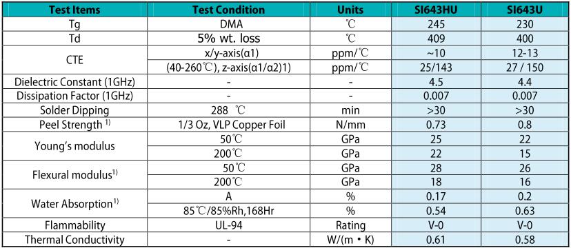 芯片封裝基板SI643HU材料規(guī)格書